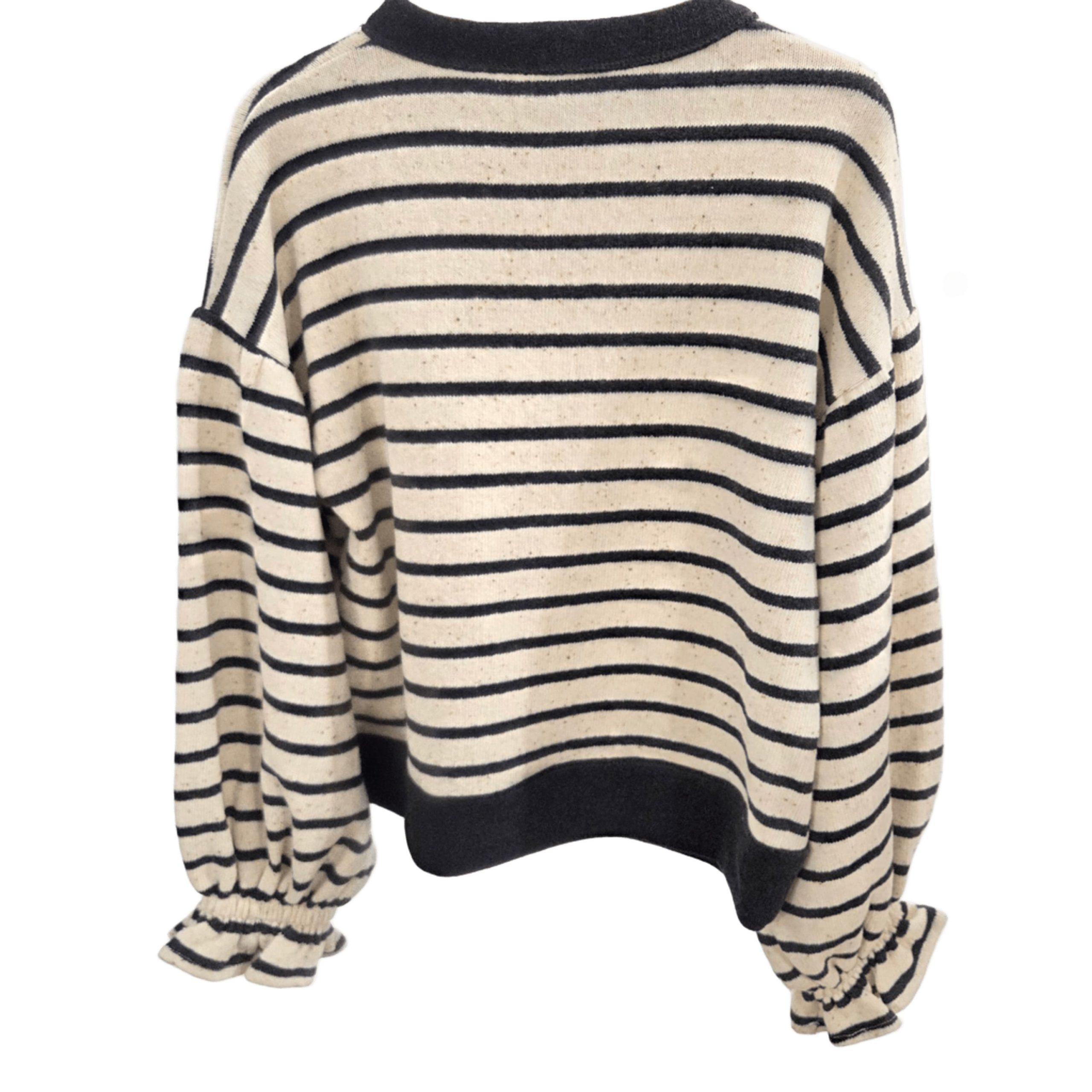 Maglia a righe con volant ai polsi in caldo cotone – Fiorile – Naturale